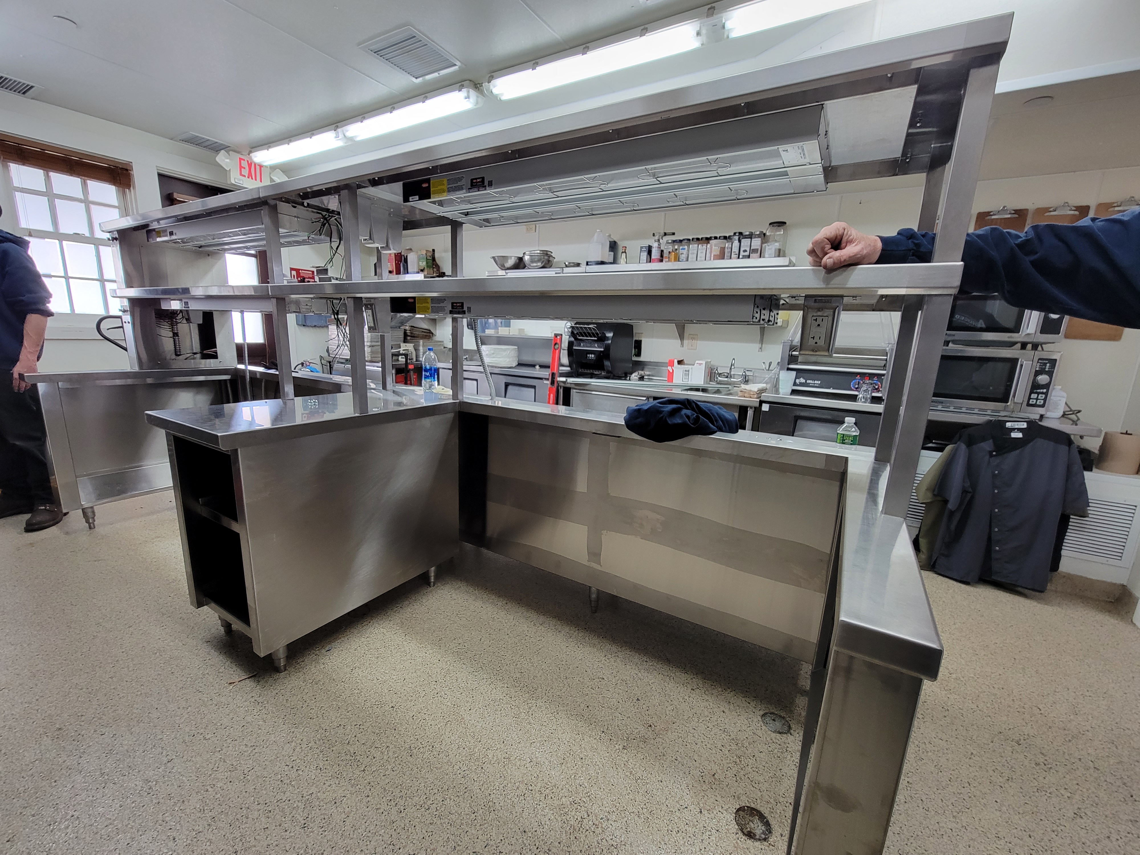 - Two pass-through shelves: one for smallwares storage; one with heat lamps for finished plates to the expo side.